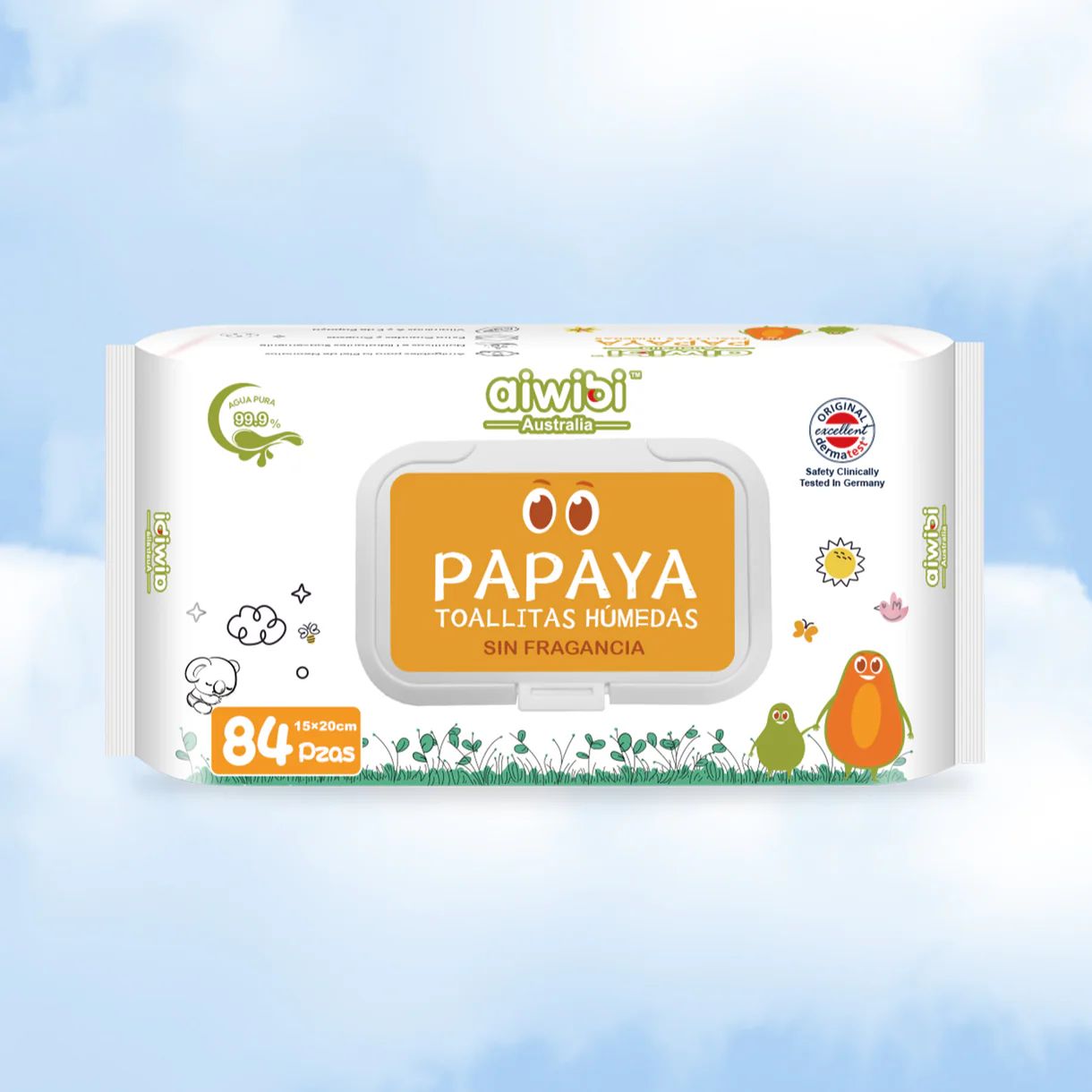 Las toallitas húmedas de agua Aiwibi están elaboradas con 99,9% agua pura y enriquecidas con extracto orgánico de papaya, brindando una limpieza suave y efectiva. Enriquecidas con agua de manantial natural de Kulnura, Australia, estas toallitas húmedas sin alcohol son más grandes, gruesas y ultra suaves, ideales para limpiar y cuidar la piel sensible del bebé.
